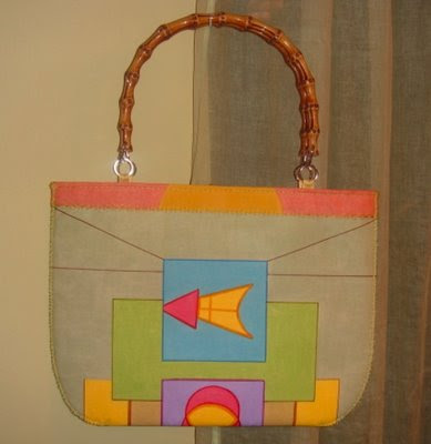 How appropriate! You can take this bag anywhere and it complements any color: yellow, green, purple, red, black or brown. The front of the bag off course is my design and it is made of cotton with a little accent of silk on the back. The top/back is adorned with hand stitched red beads. This bag is to dye for. I personally would buy it for myself.